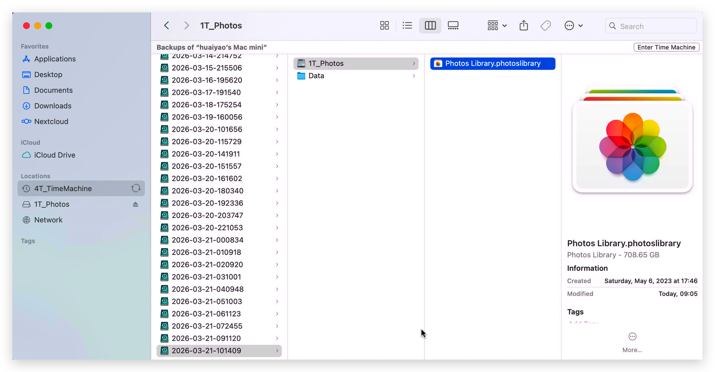 这里最新的文件是 3 月 19 号的,是因为过去两天没有手动打开手机上的 MT-Photos app,刚刚备份了增量数据就没问题了。