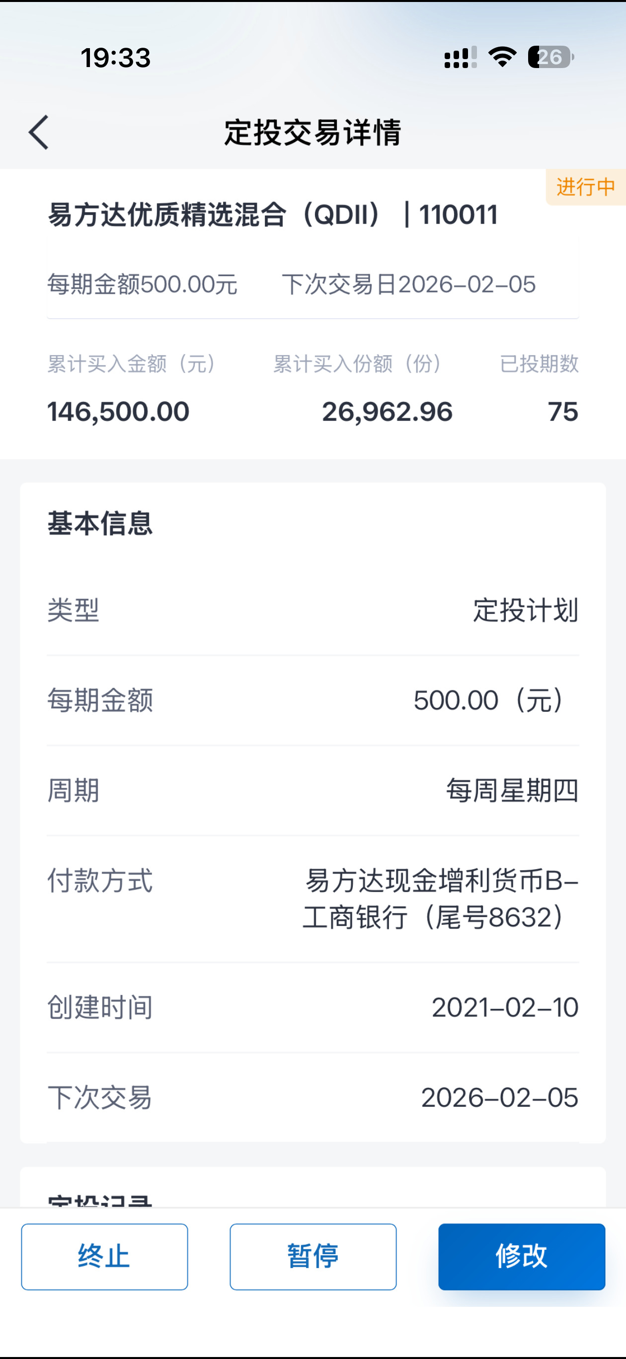 - 白酒“跌跌不休”,反复纠结要不要重启定投。最后还是决定相信基金经理,重启定投张坤的易方达优质精选混合。大不了再放个几年,毕竟也“相识”了15年了。