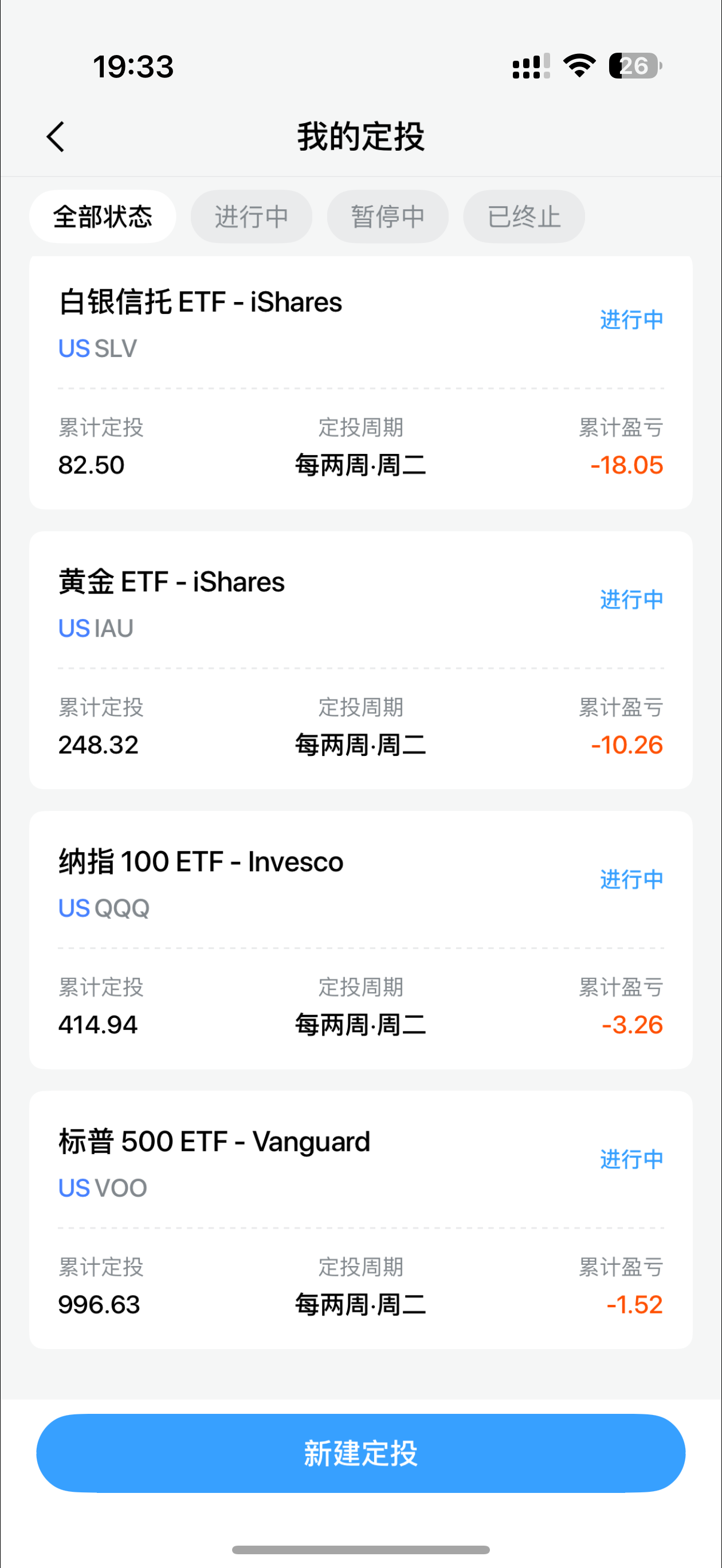 - 开始定投标普500,纳指100,黄金指数,白银指数,多元化配置。
